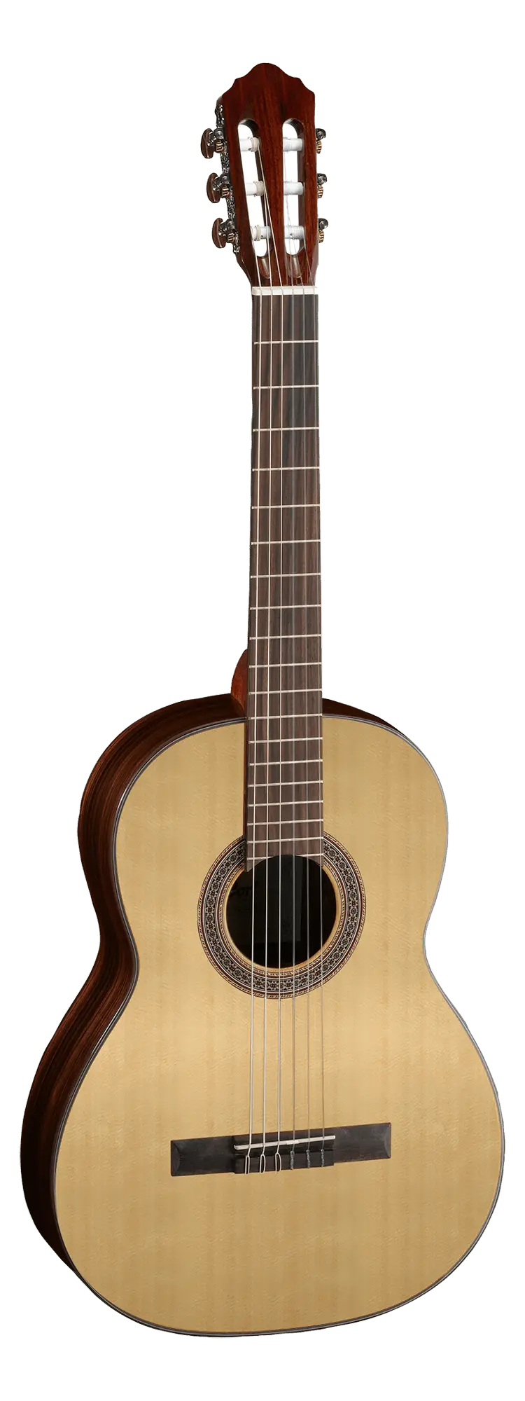 Гриф изготовлен из красного дерева с С-образным профилем — наиболее популярной и широко используемой формой грифа на классических гитарах. Такой профиль предоставляет пальцам достаточно места для комфортного исполнения сложных пассажей и расширяет пространство между струнами, позволяя музыканту оттачивать технику игры без риска задеть соседнюю струну. Изгиб головки грифа увеличивает чувство комфорта для большого пальца левой руки во время игры. Накладка грифа и бридж выполнены из палисандра. Ширина грифа у верхнего порожка составляет 52 мм, мензура — 650 мм. Гриф крепится методом «ласточкин хвост».
