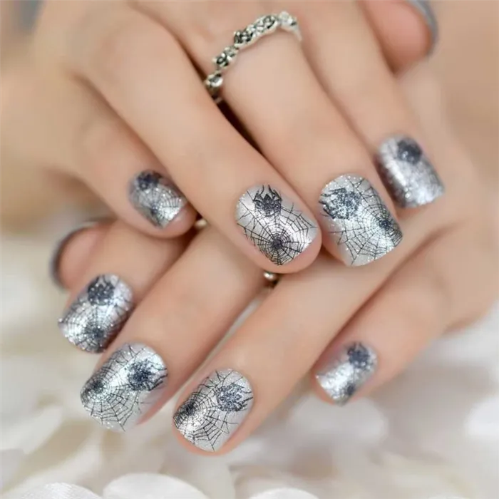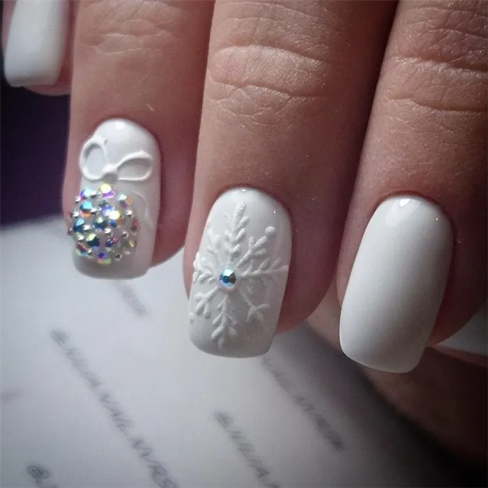 Золотые украшения не подходят для этого вида дизайна ногтей. Серебристый маникюр в день большого праздника с подходящим нарядом подходит к этому торжеству и делает образ по-настоящему сказочным и волшебным.