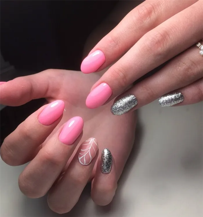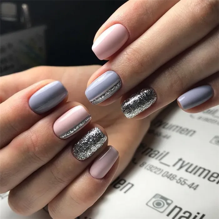 Если вы хотите создать самый простой, но красивый нейл-арт, варьируйте розовый лак для ногтей с серебряным. Такой дизайн прекрасно подходит для повседневных образов, вечерних и даже профессиональных. Также не забывайте о других оттенках лака, которые хорошо сочетаются с серебром. К ним относятся фиолетовый и сиреневый гель-лаки.