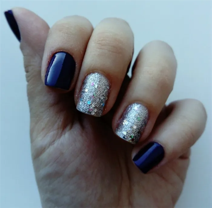 Серебристый лак, глиттер и блестки на ногтях: модные тенденции, фото 2022-2023