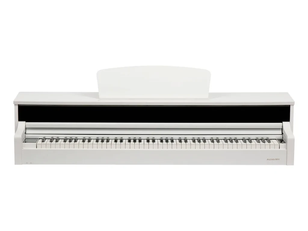 Цифровое пианино Aurora AU140-WH в белом цвете, версия со стойкой. Клавиши полноразмерные, 88 клавиш с взвешенной молоточковой механикой и встроенной акустикой.