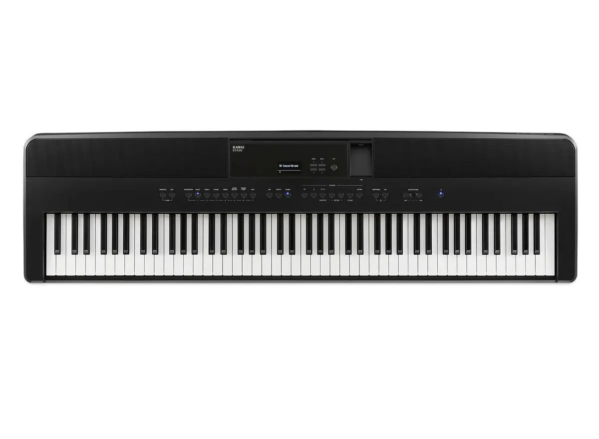 Kawai ES520B — портативное цифровое пианино с реалистичной молотковой механикой клавиатуры и мощным звучанием, подходящее для дома, студии или сцены.