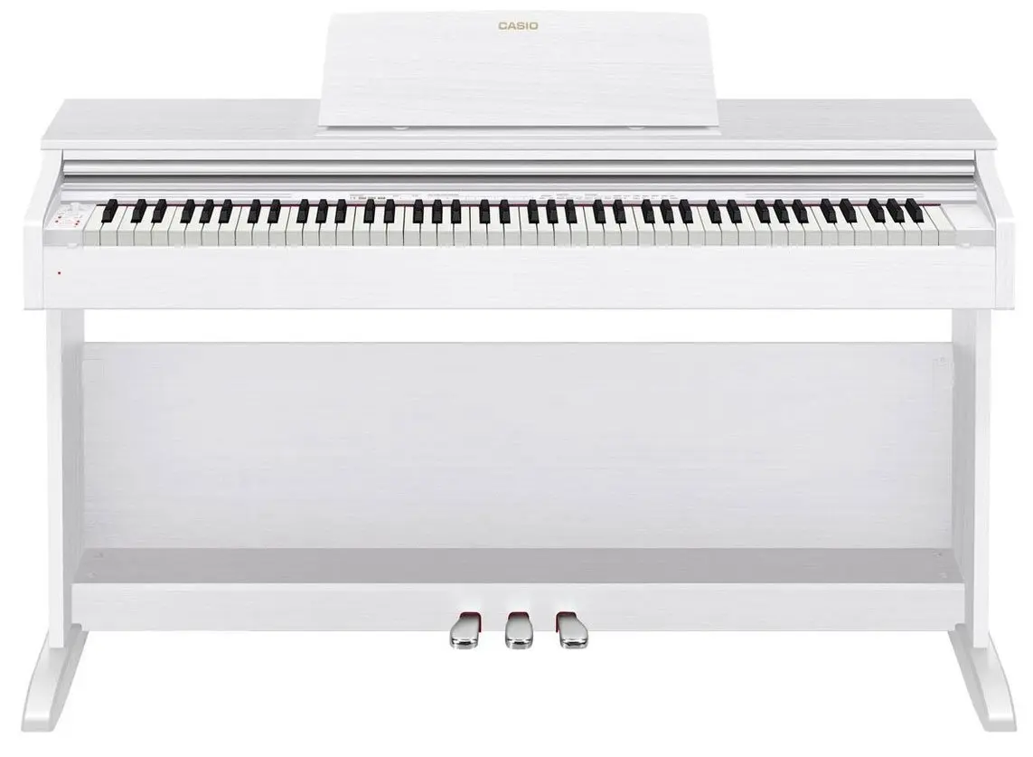 Casio Celviano AP-270WE — классическое цифровое пианино в элегантном белом деревянном корпусе, идеально подходящее для дома, обучения и творчества. Оно оснащено полноразмерной взвешенной клавиатурой из 88 клавиш с молоточковым механизмом Tri-Sensor Scaled Hammer Action II и тремя сенсорами для реалистичного ощущения игры на акустическом инструменте.