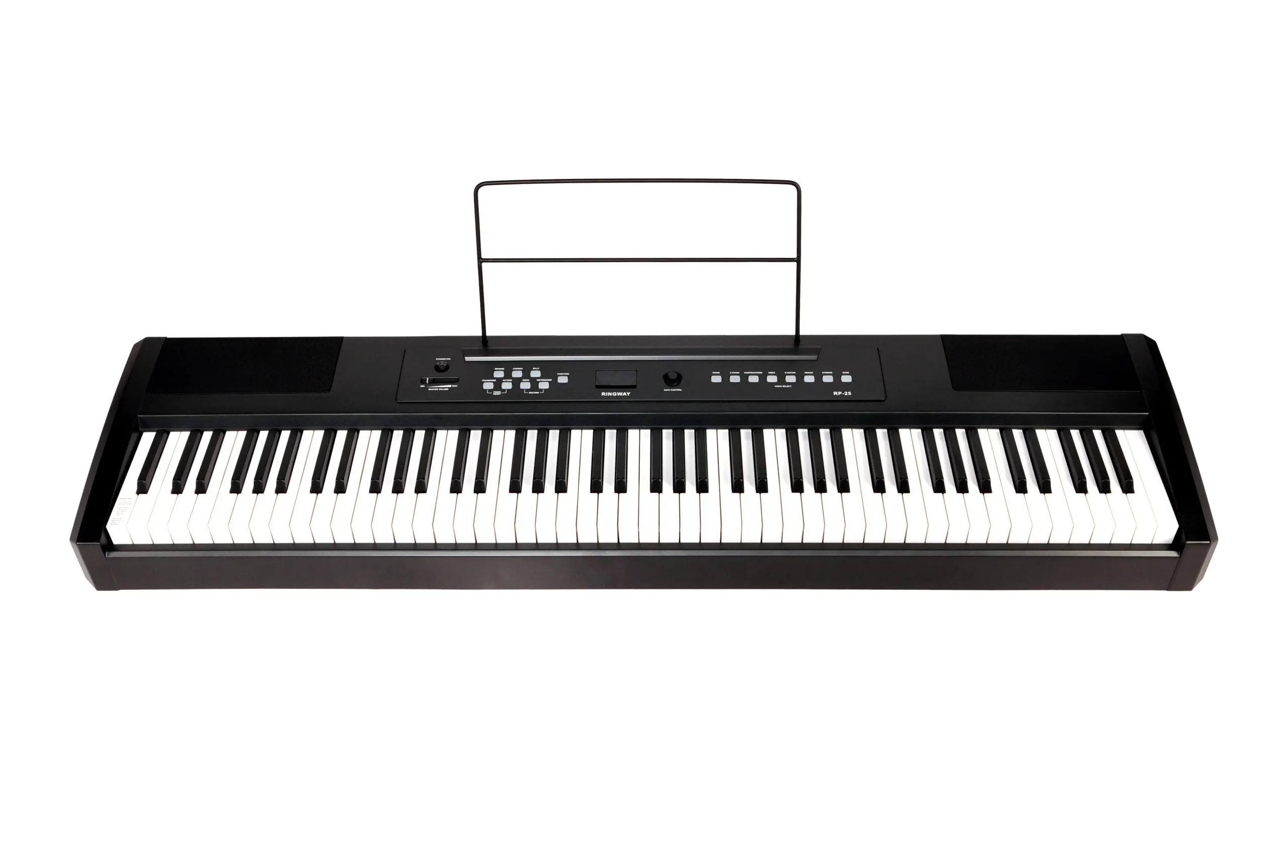 Ringway RP-25 — компактное цифровое пианино в стильном чёрном корпусе из прочного пластика. Оно оснащено 88 полноразмерными взвешенными клавишами с молоточковым механизмом, чувствительными к силе нажатия, что обеспечивает реалистичные ощущения, близкие к акустическому фортепиано.