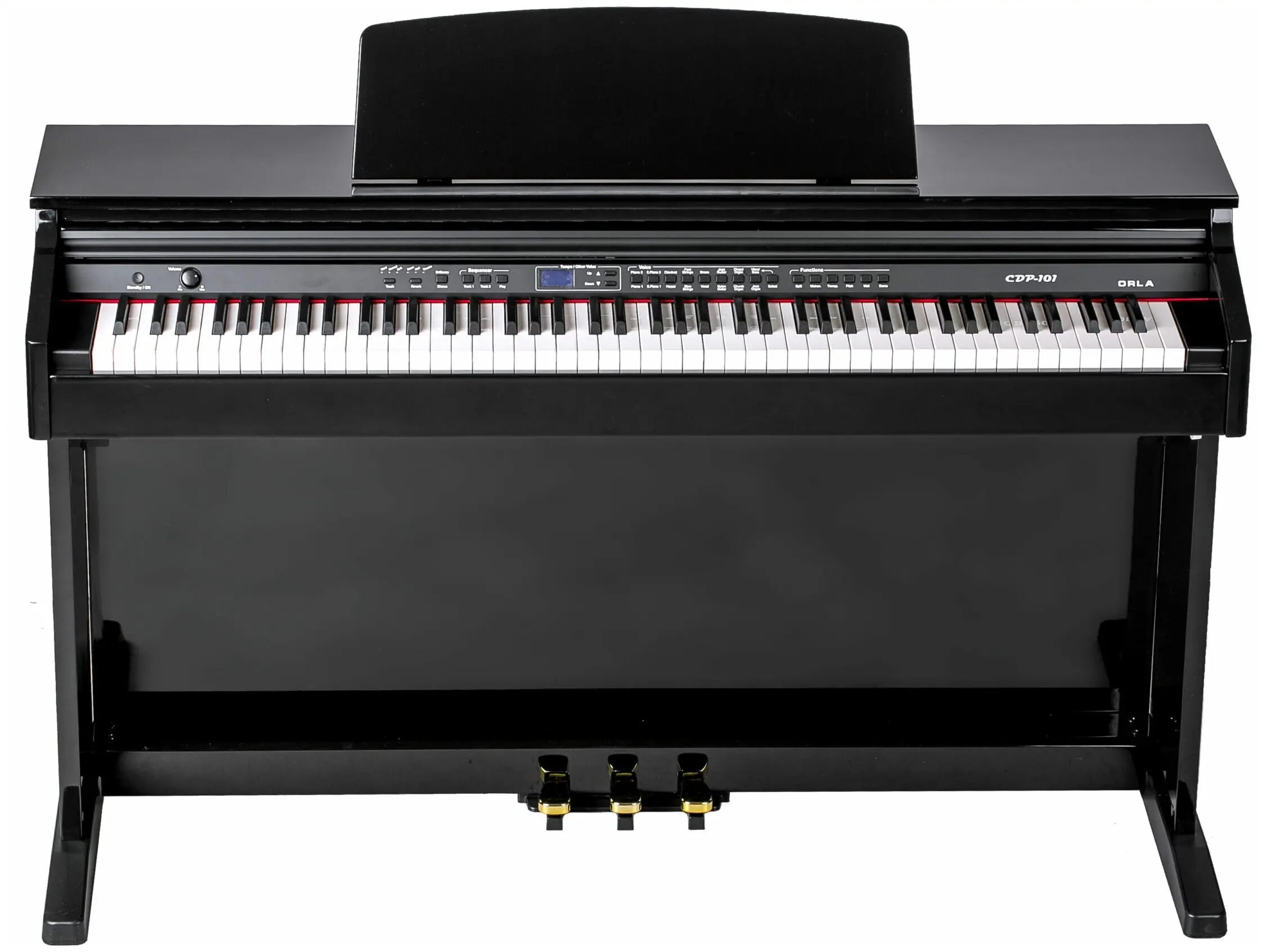 Цифровое пианино марки CDP 101 Black с кристально чистым звуком выпускает знаменитый бренд из Италии Orla. Огромный опыт, накопленный с середины прошлого века, позволяет компании Orla создавать совершенные музыкальные инструменты. Электронное пианино CDP 101 цифрового типа предоставляет опытным и начинающим музыкантам многочисленные возможности. Богатая звуковая библиотека, дисплей, многочисленные и разнообразные возможности подключения, опция подсоединения усилителя, наушников, удобные регулировки, встроенные педали, отличная клавиатура делают это пианино прекрасным выбором. Порт USB обеспечивает работу с MIDI файлами и компьютером. Bluetooth позволяет использовать цифровое пианино как систему караоке, взаимодействуя с айфонами, планшетами, смартфонами.