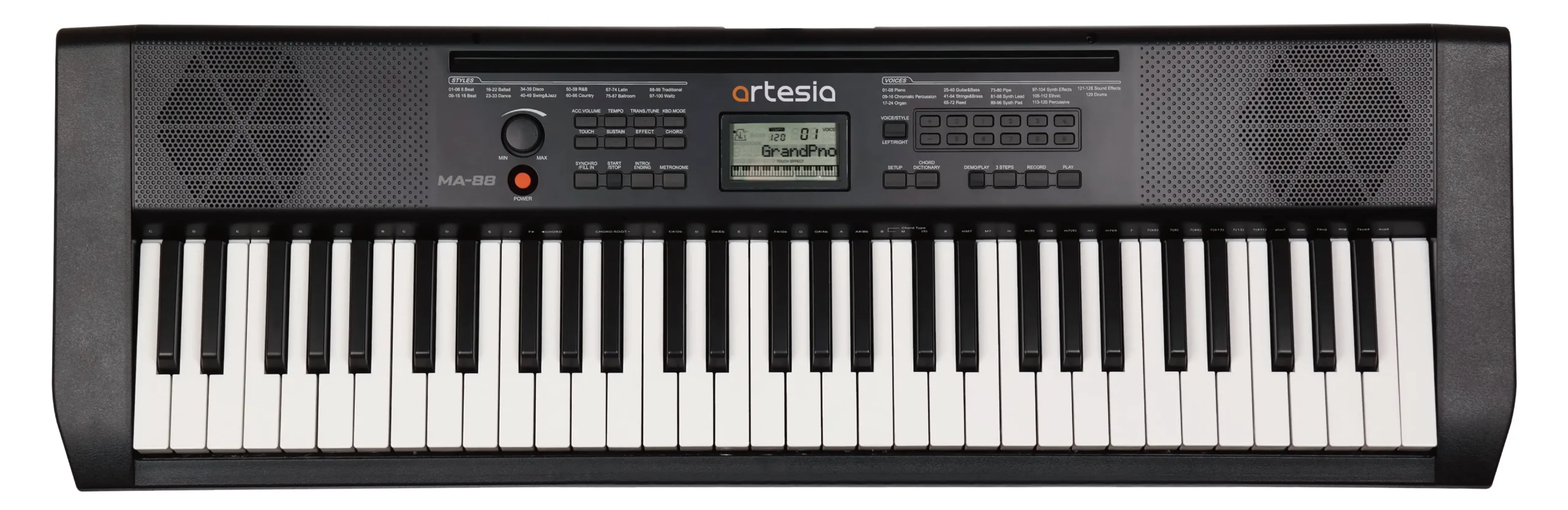 Синтезатор Artesia MA-88 — это компактный электромузыкальный инструмент, идеально подходящий для начинающих музыкантов. Устройство сочетает возможности полноценного синтезатора с доступной ценой и высокой портативностью.