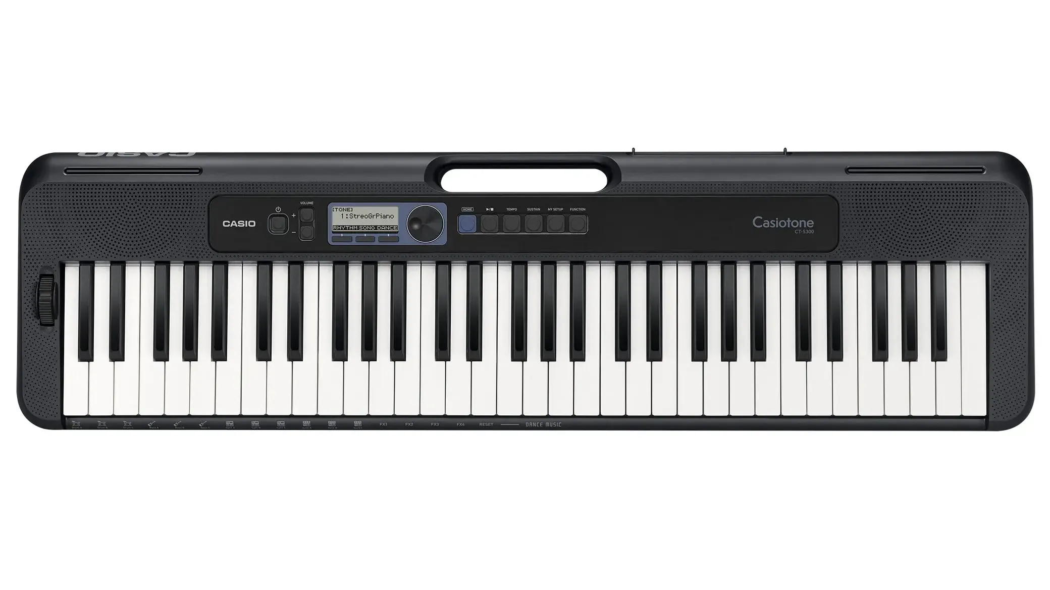 Casio CT-S300BK — компактный цифровой синтезатор для начинающих музыкантов с 61 полноразмерной полувзвешенной клавишей фортепианного типа, чувствительной к силе нажатия. Инструмент отличается высоким качеством сборки, удобством транспортировки и широким набором функций для творчества и обучения.